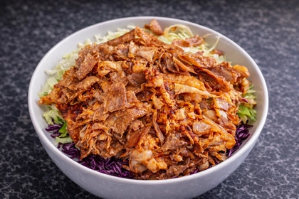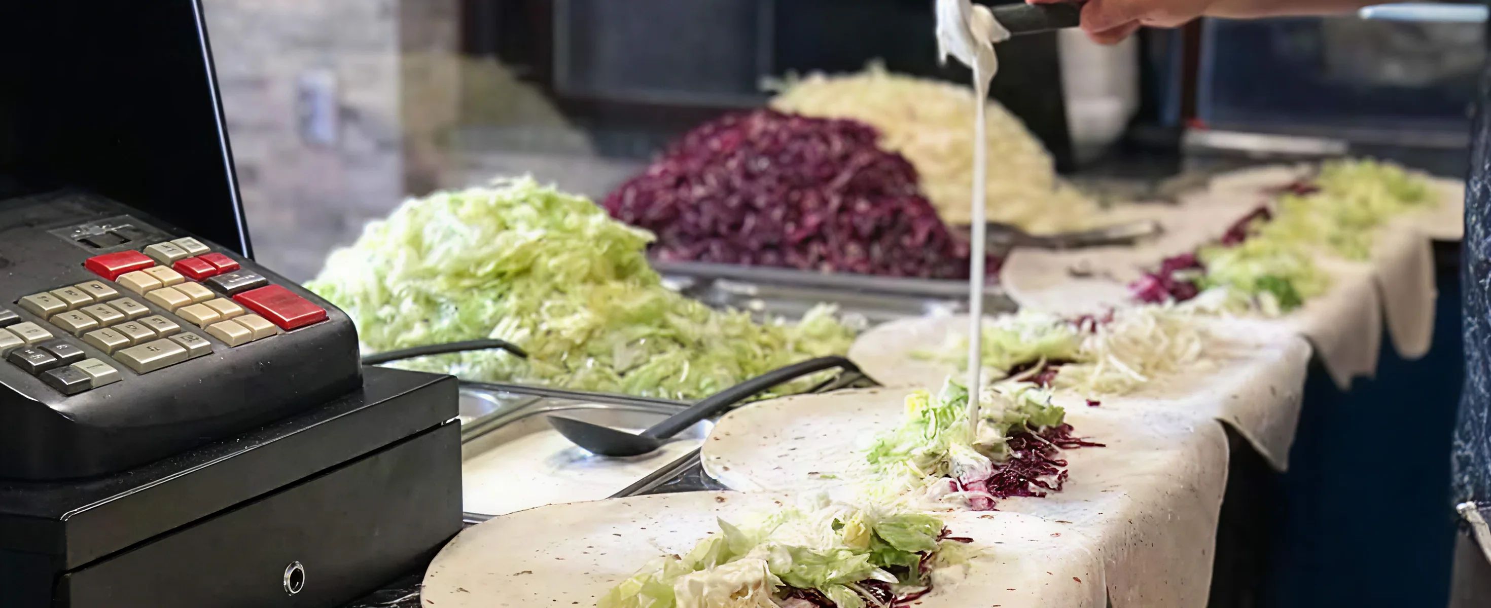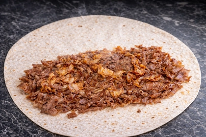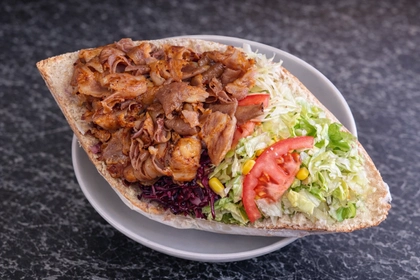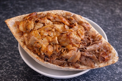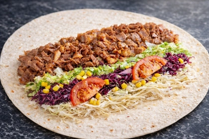 maso, zeleninový salát a omáčka v tureckém chlebu