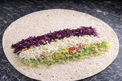 ovčí sýr, zeleninový salát a omáčka v tortile
