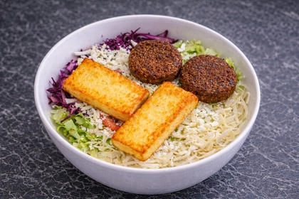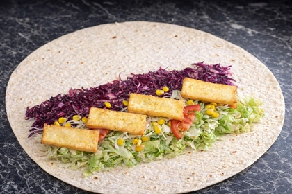sýr halloumi, zeleninový salát a omáčka v tortile